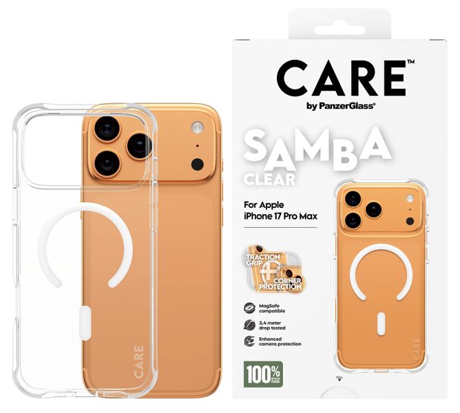 Das CARE by PanzerGlass® Fashion Case Samba vereint elegantes Design mit außergewöhnlichem Komfort. Das schlanke Design und die glatte Oberfläche verleihen Ihrem Telefon einen modischen Look und bieten gleichzeitig sicheren Halt. Das Case ist vollständig mit dem kabellosen MagSafe- Laden kompatibel, sodass Sie es nicht abnehmen müssen, um schnelles und bequemes Laden zu genießen.