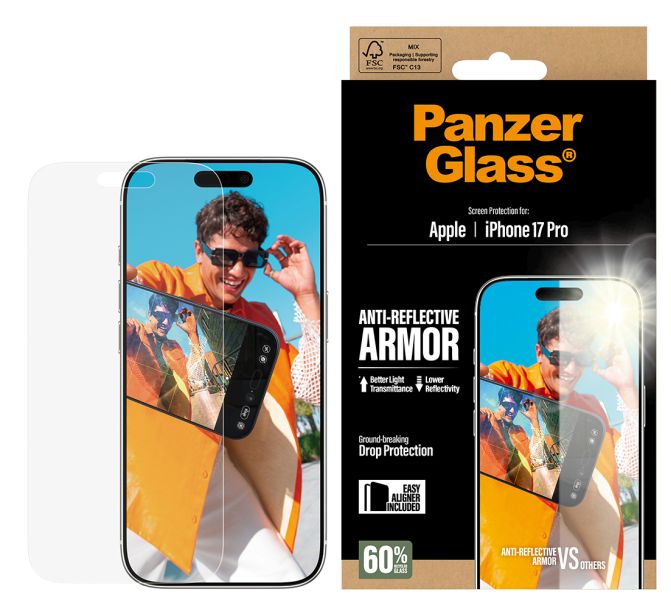 PanzerGlass® bietet nicht nur Smartphone-Schutz, sondern auch Umweltverantwortung. Das Produkt wird in umweltfreundlichen, FSC™-zertifizierten Verpackungen hergestellt und der Produktionsprozess entspricht den Standards ISO 9001 und ISO 14001. REACH-, RoHS- und GRS-Zertifizierungen bestätigen Transparenz und die Einhaltung höchster Standards, während unsere Partnerschaft mit der Perfect World Foundation den Schutz von Ökosystemen und die Reduzierung von Plastik in den Ozeanen unterstützt. Mit Anti-Reflective Armor investieren Sie in Komfort, Sicherheit und die Zukunft unseres Planeten.