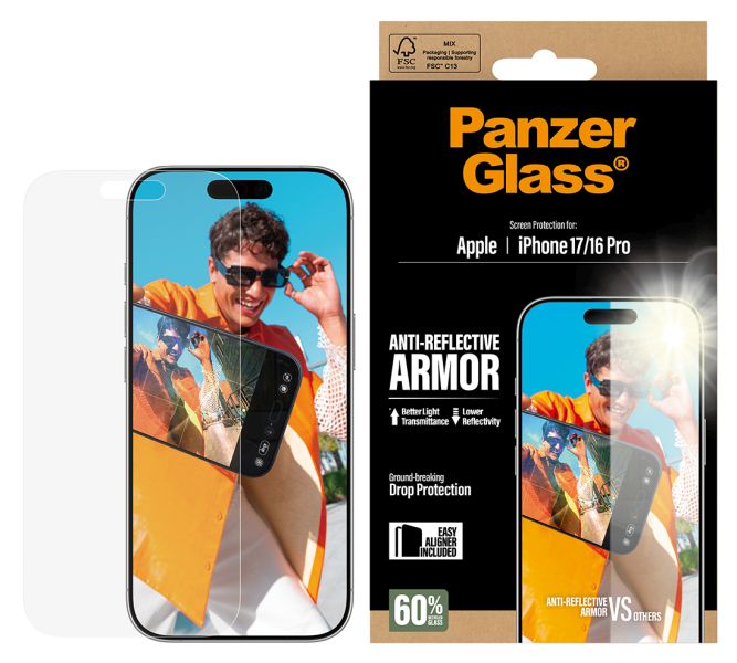 PanzerGlass® offers not only smartphone protection but also environmental responsibility. The product is manufactured in eco-friendly, FSC™-certified packaging, and the production process meets ISO 9001 and ISO 14001 standards . REACH, RoHS, and GRS certifications confirm transparency and compliance with the highest standards, while our partnership with the Perfect World Foundation supports the protection of ecosystems and the reduction of plastic in the oceans. By choosing Anti-Reflective Armor , you're investing in comfort, safety, and the future of the planet.