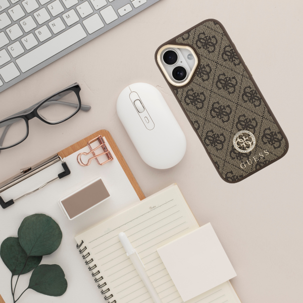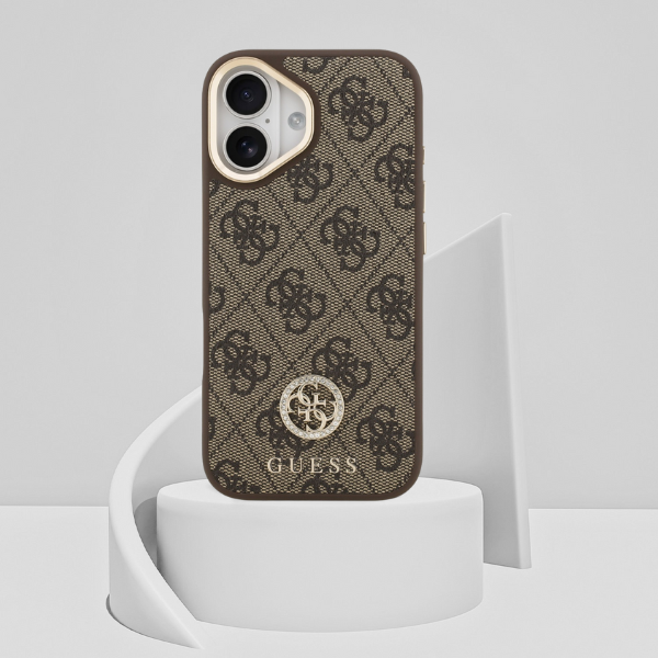 W dolnej części etui znajduje się emblemat 4G oraz logo Guess, które subtelnie podkreśla prestiż tego etui.