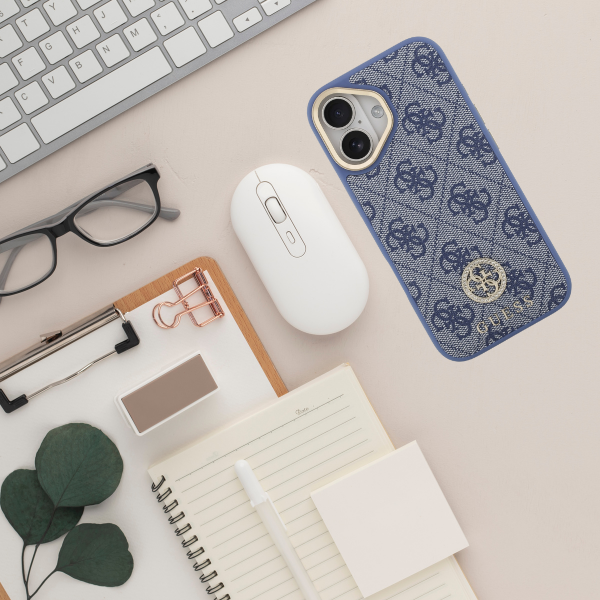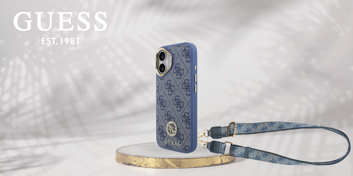 W dolnej części etui znajduje się emblemat 4G oraz logo Guess, które subtelnie podkreśla prestiż tego etui.