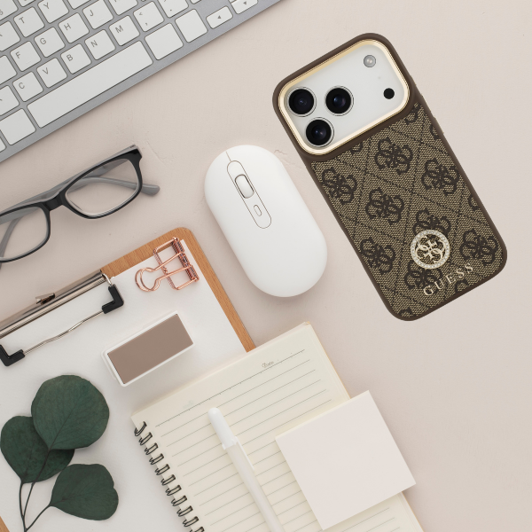 W dolnej części etui znajduje się emblemat 4G oraz logo Guess, które subtelnie podkreśla prestiż tego etui.