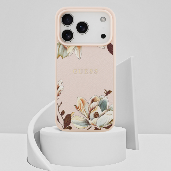 Etui Guess Grained Flowers Classic Logo MagSafe