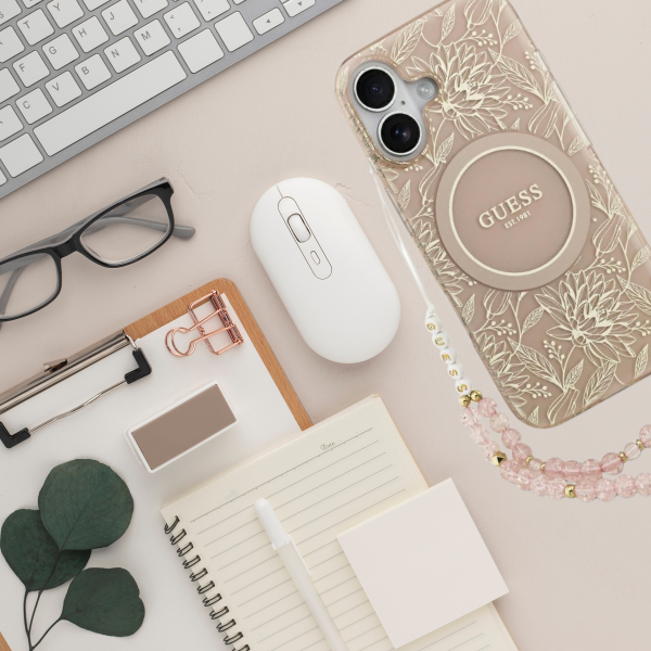 Ta elegancka kolekcja zachwyci nawet najbardziej wybredne i wyrafinowane gusta. Wierzchnia warstwa pokrowca zachwyca subtelnym, złotym, roślinnym wzorem, który nadaje mu elegancji i klasy. Centralnym punktem etui jest złoty pierścień MagSafe, otaczający stylowe logo GUESS, które dodaje prestiżu i podkreśla wyjątkowy design. Całość uzupełnia gustowny koralikowy brelok, doskonale współgrający z kolorystyką pokrowca, z literkami tworzącymi nazwę „GUESS”, co sprawia, że akcesorium to jest nie tylko praktyczne, ale i wyjątkowo modne.