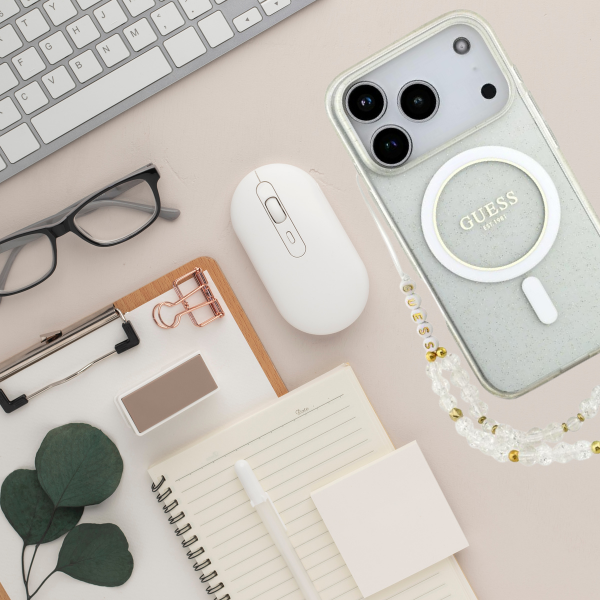 Etui Guess IML Glitter Pearl Strap MagSafe