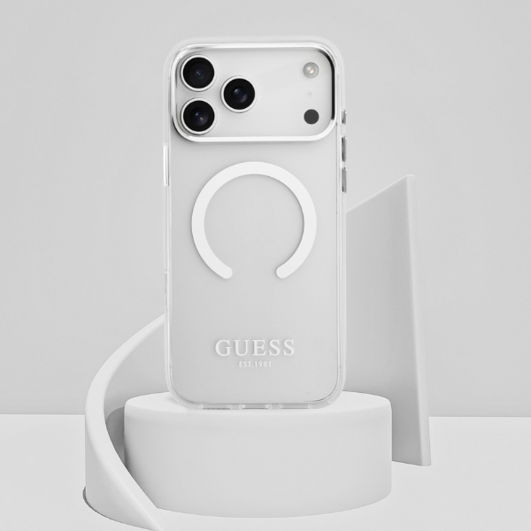 Ekskluzywne etui ochronne od renomowanej marki Guess to połączenie elegancji i stylu na najwyższym poziomie. Etui wykonano z wysokiej jakości poliwęglanu oraz poliuretanu. Powierzchnię zdobi srebrny pierścień MagSafe oraz logo Guess, które subtelnie podkreśla prestiż tego etui.