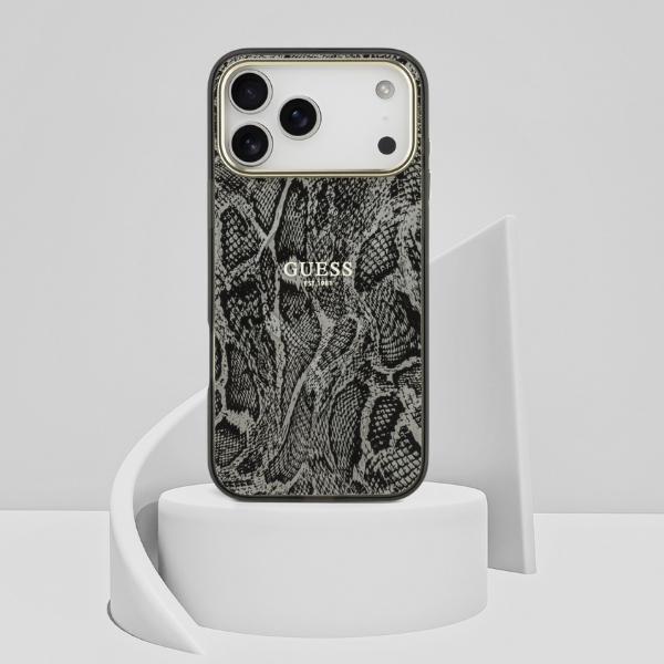 Ekskluzywne etui ochronne od renomowanej marki Guess to połączenie elegancji i stylu na najwyższym poziomie. Etui wykonano z wysokiej jakości poliwęglanu oraz poliuretanu. Powierzchnię zdobi zwierzęcy wzór, imitujący skórę węża oraz