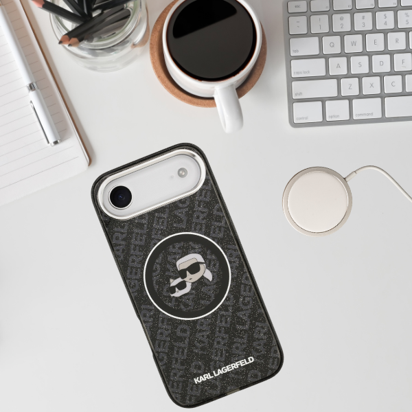 Etui wykonano z wysokiej jakości materiałów i jest nie tylko stylowe, ale także trwałe i odporne na ścieranie. Seria ta wyróżnia się brokatową powierzchnią oraz unikalną grafiką IML, prezentującą podobiznę słynnej kotki Choupette w towarzystwie ikonicznego projektanta Karla Lagerfelda. Logo marki umieszczone na całym etui, oraz w dolnej jego części nie tylko dodaje elegancji pokrowcom, ale również stanowi symbol autentyczności oraz doskonałej jakości.