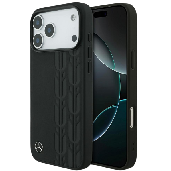 Tylną część zdobi tłoczony wzór liści laurowych oraz metalowe logo Mercedes-Benz, które podkreśla elegancki i sportowy charakter etui.