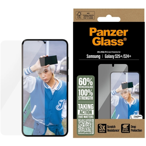 PanzerGlass Ultra-Wide Fit to szkło hartowane stworzone z myślą o maksymalnym bezpieczeństwie ekranu i trosce o środowisko. Produkt wykonano w 60% z materiałów pochodzących z recyklingu, dzięki czemu chronisz nie tylko swój smartfon, ale i planetę. Certyfikowane, ekologiczne opakowanie dodatkowo potwierdza zrównoważony charakter rozwiązania.